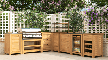 GrandPro is a brand of modular outdoor kitchens designed for residential garden and patio settings. The range includes configurable components and integrated grill options that allow for different layout arrangements depending on available space and intended use.
